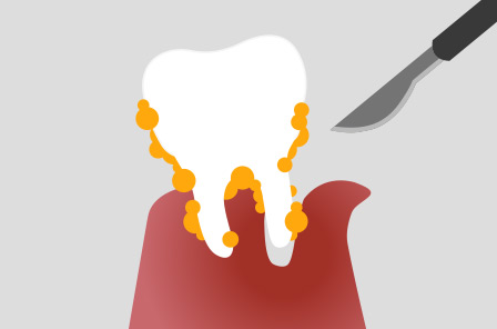 앞선 방법으로도 제거되지 못할 경우, 외과적 수술로 잇몸을 열고 염증조직과 치석을 제거합니다.